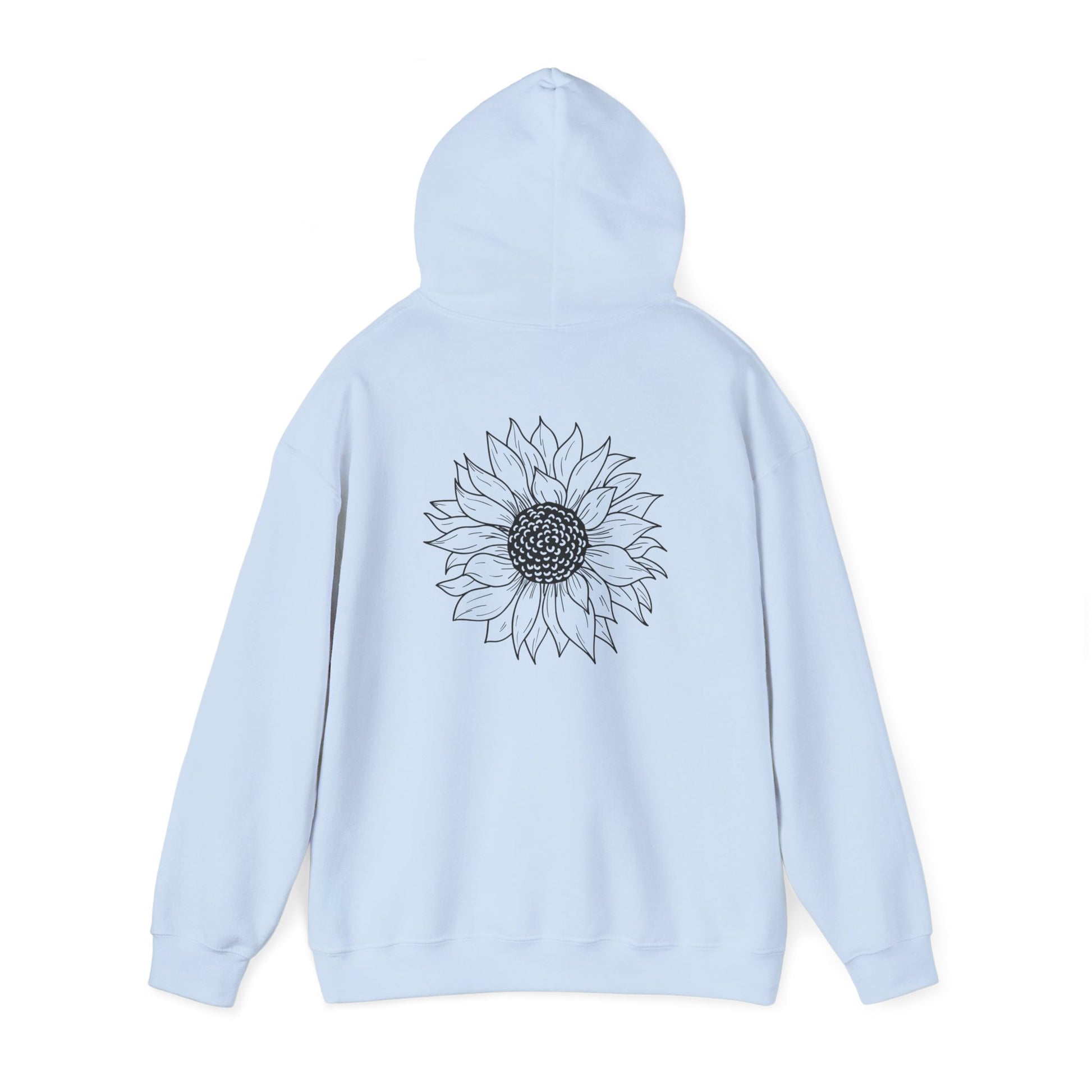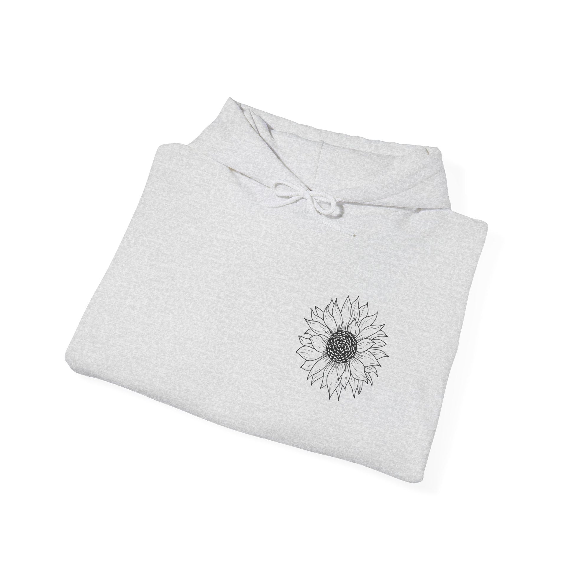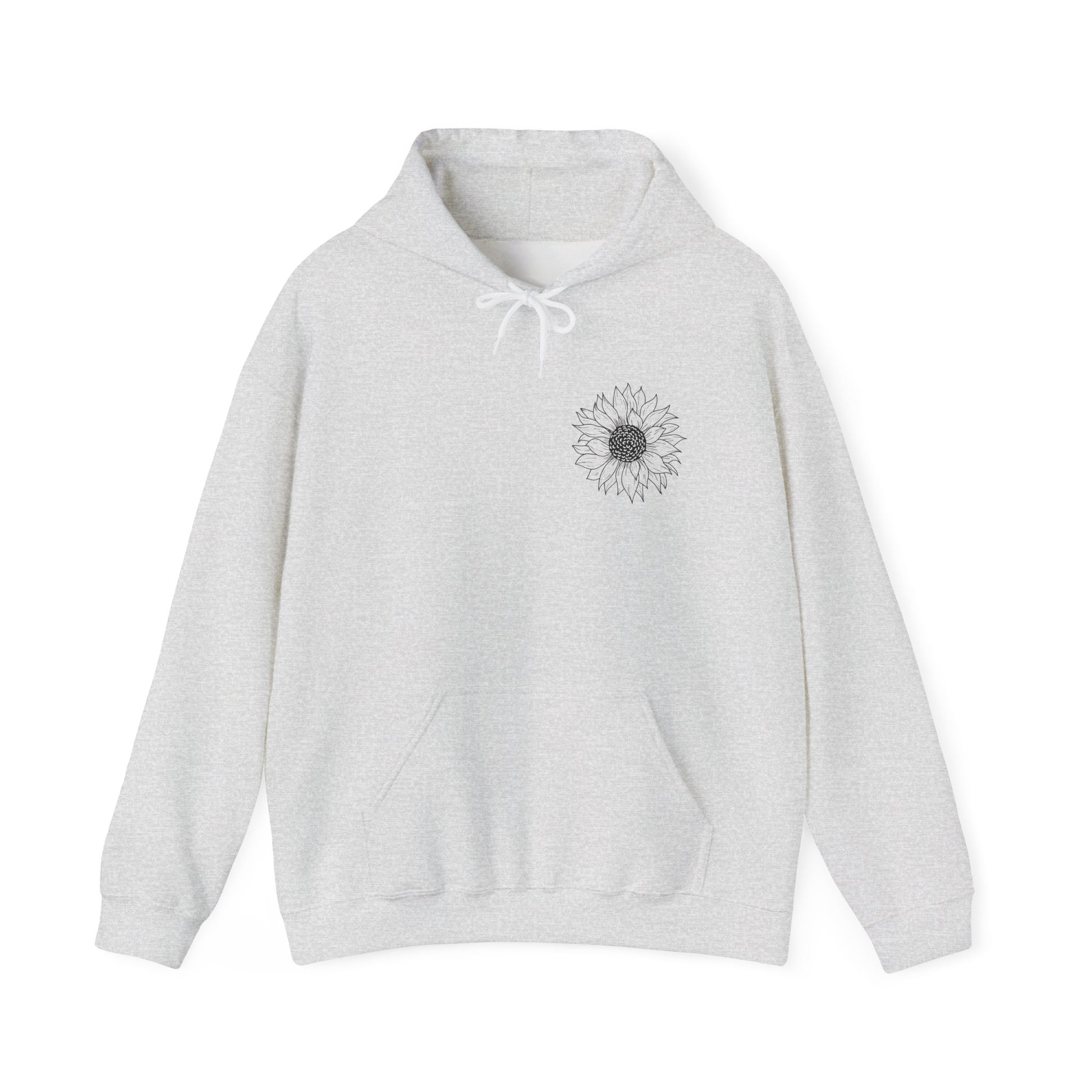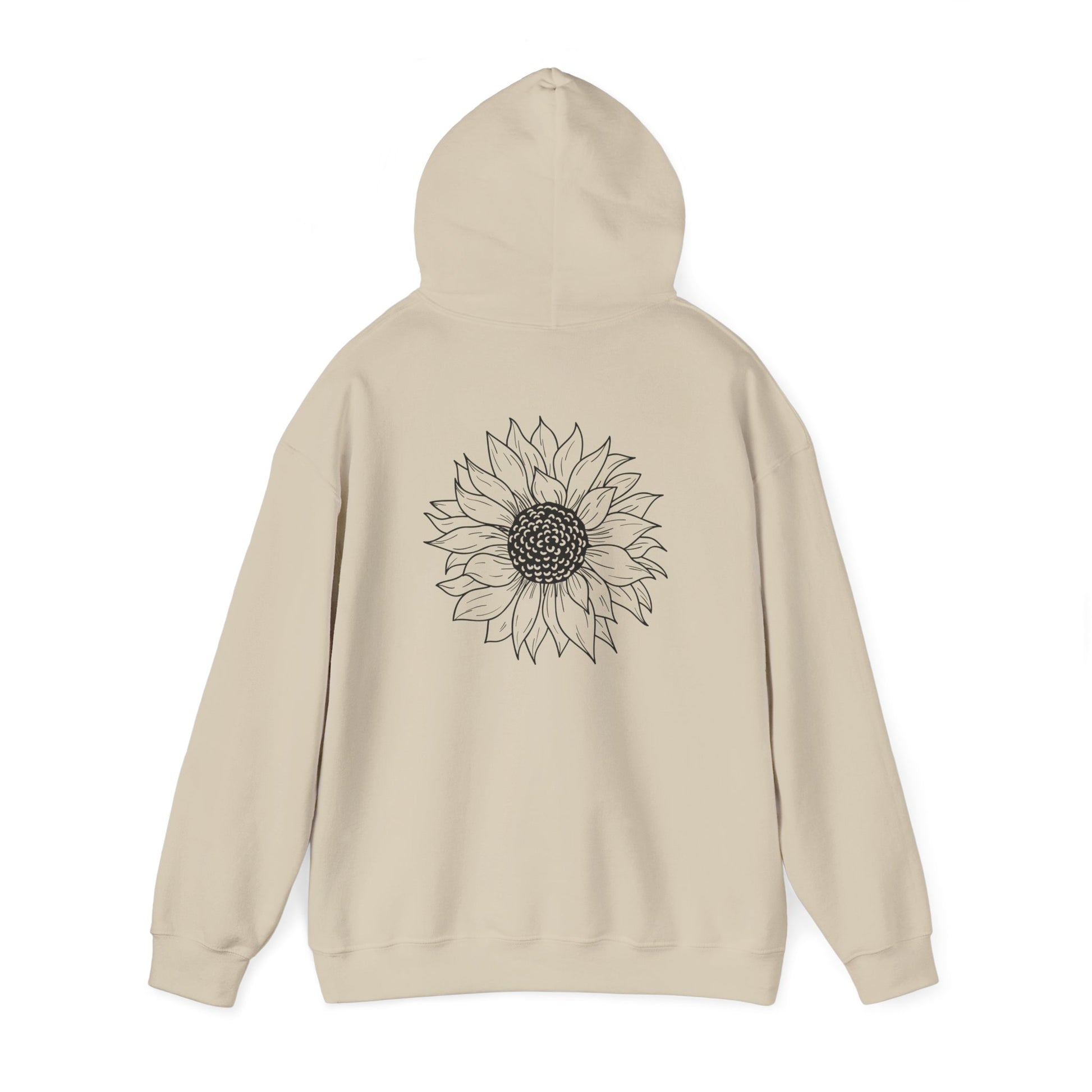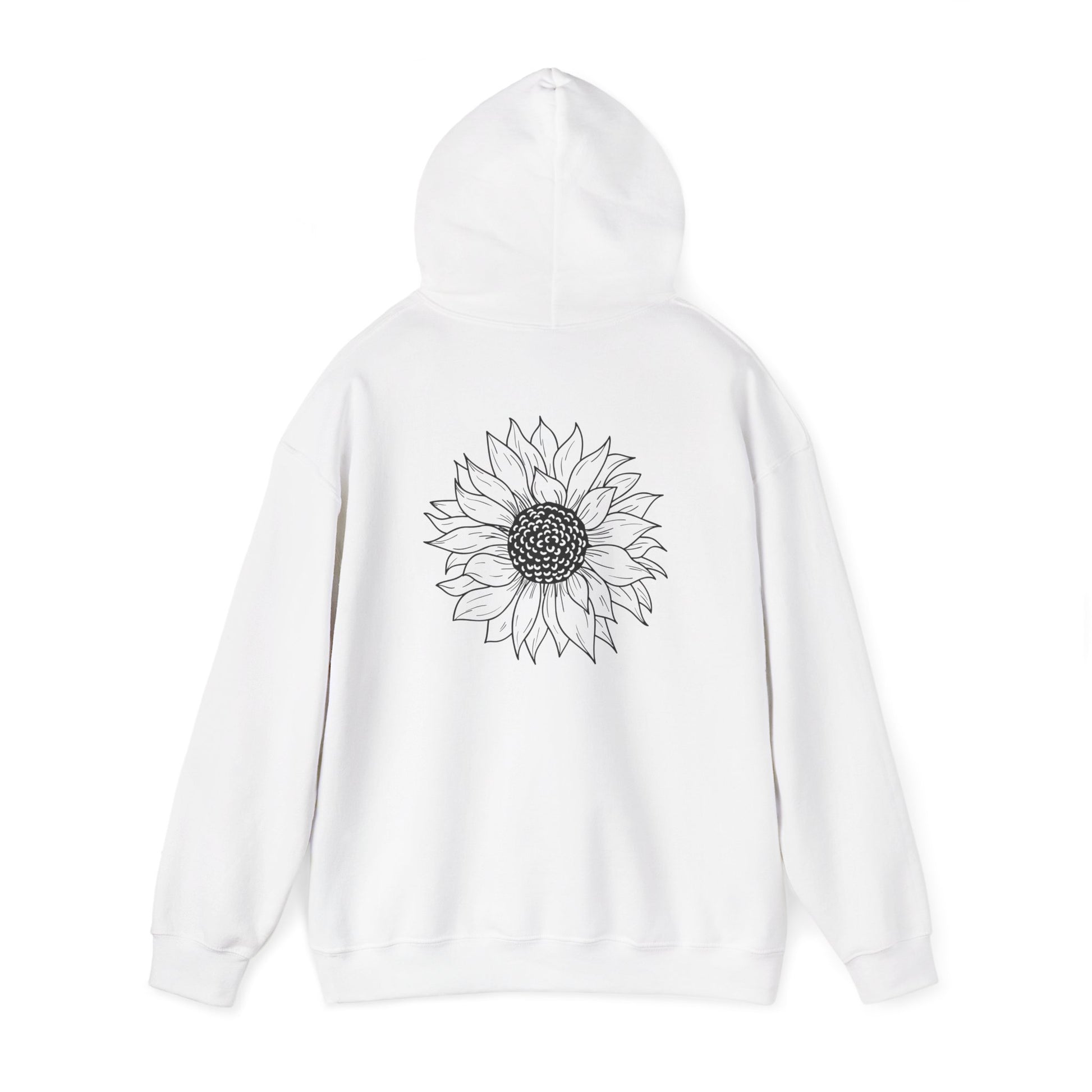 Embrace comfort and style with this cozy, unisex heavy blend hoodie. Designed for those chilly days, it features a spacious kangaroo pocket, perfect for keeping your hands warm or stashing little essentials. The adjustable drawstring hood not only adds function but also a touch of flair to the piece. Crafted from a blend of 50% cotton and 50% polyester, this hoodie has a soft, luxurious feel that's just right for lounging at home or out and about. Its elegant sunflower design on the front and back creates a cheerful vibe, making it a great fit for nature lovers and anyone who appreciates a pop of creativity in their wardrobe. Ideal for casual outings, cozy nights in, or outdoor adventures, it makes a thoughtful gift during holidays like Thanksgiving, Earth Day, or Mother’s Day. Perfect for adults who value both comfort and style, this hoodie is a must-have addition to your collection.